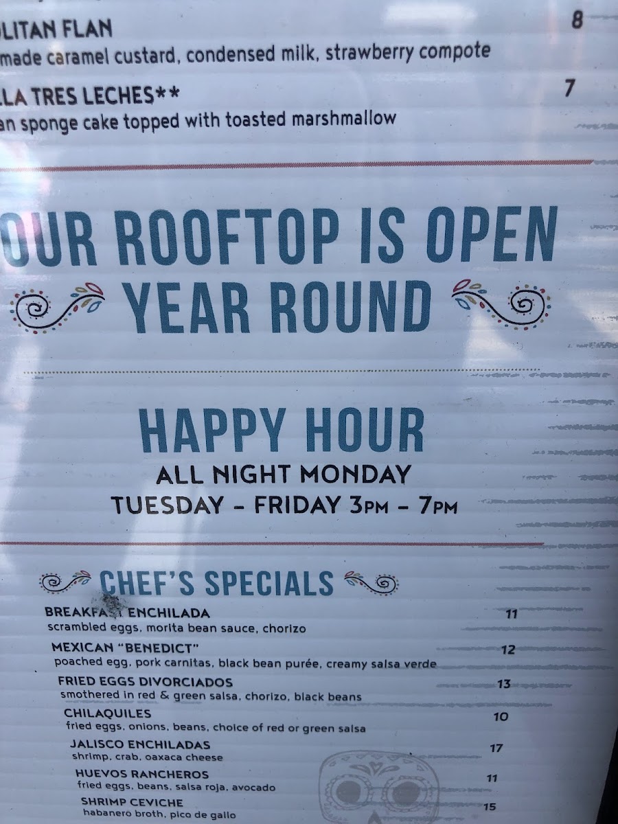 For those craving a hearty meal, dive into their Enchiladas & Fajitas. Opt for the Chicken Enchiladas Divorciadas or the Achiote Chicken Fajitas, both beautifully plated and packed with zest. Don’t miss the delightful **Churros** for dessert, perfectly paired with passion fruit jam and warm chocolate sauce, delivering a sweet conclusion to your dining experience.